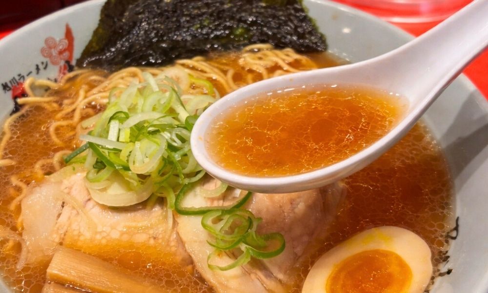 お店の代名詞でもある、動物系×魚介系の旨味が詰まった「旭川醤油ラーメン」が見事に再現されています。